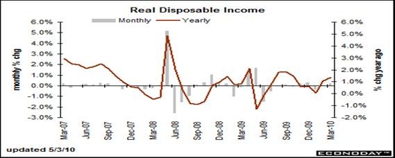 Personal income growth for March rose to 3.0 percent over last year, rising from 2.2 percent in February. Year-ago headline PCE inflation firmed to 2.0 percent from 1.8 percent in February. The so-called core PCE inflation without energy and food prices was steady at 1.3 percent.