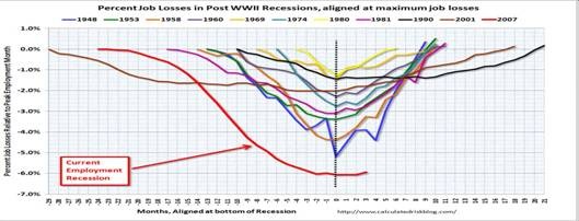 What about paying back the $11 trillion in public debt? We can follow the post-WW II scenario, when it was 120 percent of GDP. That debt was paid down to its lowest level by 1980 in the post-war recovery. Today it is approaching 90 percent of GDP, because this was the worst downturn since the Great Depression. So once again the key to a recovery is keeping consumers healthy, which leads to more jobs and higher incomes.