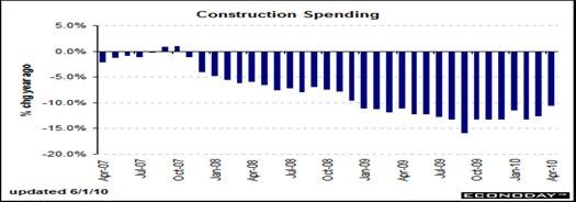 And the construction industry is beginning to recover, a good sign for real estate. Expiring special tax credits for homebuyers and the recent surge in home sales have carried over to unexpected strength in construction activity. Apparently, this has cut into new home inventories enough to give homebuilders confidence to bump up the pace of new construction. However, gains are coming off low levels.
