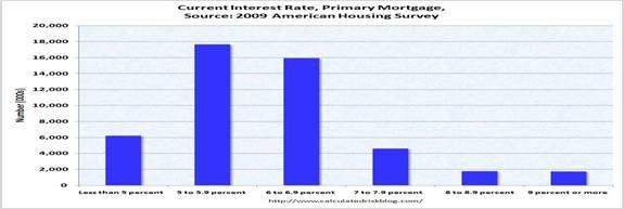 Another interesting statistic put out by Calculated Risk is the distribution of mortgage interest among homeowners.