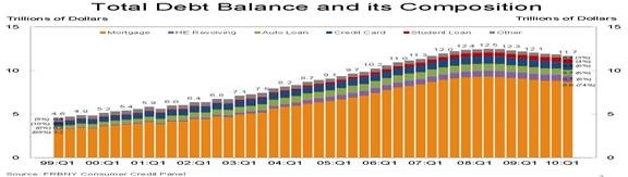 “Aggregate consumer debt continued to decline in the second quarter, continuing its trend of the previous six quarters,” said the report. “As of June 30, 2010, total consumer indebtedness was $11.7 trillion, a reduction of 6.7 percent from its peak level at the close of 2008Q3. Excluding mortgage and HELOC balances, consumer indebtedness fell 1.5 percent in the quarter and, after having fallen for six consecutive quarters, stands 8.4 percent below its 2008Q4 peak.”