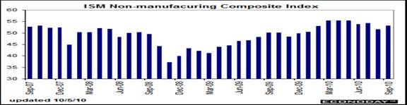 Job creation was helped by the latest Institute of Supply Management’s service sector index, which showed month-to-month strength in September, an important indication for second-half economic growth. The ISM’s non-manufacturing composite rose more than 1-1/2 points to 53.2, right in line with the year’s trend which is 53.6. New orders had been slowing but picked up nicely, 2-1/2 points to 54.9.
