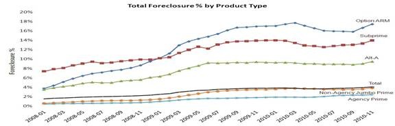 We are really talking about all the liar loans done from 2005 to 2007—the teaser rate Option ARMs, Subprime and Alternative documentation (Alt-A) loans that didn’t require income and maybe asset verification. The so-called Agency Prime (Fannie Mae and Freddie Mac) delinquency rate has always been less than 1 percent, as their qualification requirements have been the gold standard for underwriting mortgages. Not only do income and assets get verified, but also the likelihood of continued employment.