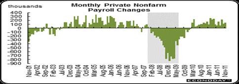 Firstly, we should understand that the experts overestimated economic growth at the beginning of 2011, then underestimated it by midyear—which means that we were never in danger of a second recession. The best example is our unemployment numbers. From June onward, both private payrolls and the self-employed have been increasing at more than 200,000 per month, which is close to pre-recession levels.