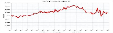 But the real measure of housing health is existing-home sales, which have been stuck in the 5million range since 2008, due to the large number of foreclosures and distressed sales.
