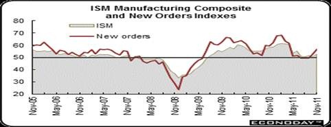 The latest report from the Institute for Supply Management also added to growth estimates as the manufacturing sector is regaining momentum. The ISM manufacturing index moved further into positive territory, rising 1.2 points in November to a reading of 52.7. The gain in the index was led by a 6.5 point jump in the production index to 56.6. Importantly, the new orders index was up a very strong 4.3 points to 56.7, above 50 to indicate monthly growth and pointing to continuing momentum.