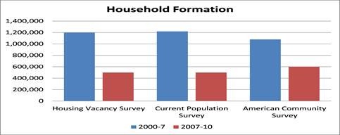 We know that it’s the combination of a better jobs market and even increased household formation that increases the demand for housing. Demand is increasing in spite of some 4 million homes somewhere in the foreclosure process. Maybe a key is that the younger, echo boomer generation is creating more households. Household formation has fallen drastically since 2007, so maybe this is the year when it will return to historical levels.