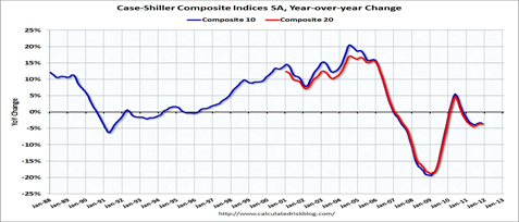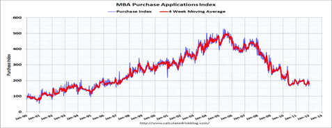 The housing bottom is really a function of incomes, jobs, and inventory of houses for sale. All three indicators are favorable for housing sales to pick up this year. But prices have to bottom first. The main price indicators are the monthly S&P Case-Shiller and FHFA price indexes that supervise Fannie and Freddie telling their direction. Another indicator that tells us when housing markets are improving is weekly mortgage application totals put out by the Mortgage Bankers Association.
