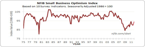 In fact, small businesses provide 70 percent of new hires, so that is where we should look for jobs’ improvement. A good measure of small business is the National Federation of Business Optimism Index, which hasn’t yet risen above recession levels. But the jobs market is tightening, in line with U.S. overall improved employment.