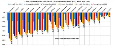 “Home prices gained in the second quarter,” says David M. Blitzer, Chairman of the Index Committee at S&P Dow Jones Indices. “In this month’s report all three composites and all 20 cities improved both in June and through the entire second quarter of 2012. All 20 cities and both monthly Composites rose for the second consecutive month. It would have been a third consecutive month had we not seen home prices fall in Detroit back in April.”