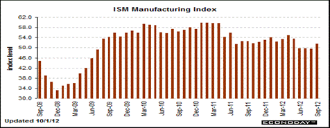 The ISM manufacturing index saw a huge boost after 3 down months to a 51.5 percent reading for manufacturing activity.