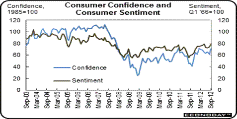 Another sign of improving jobs picture was the jump in consumer optimism. The Conference Board’s consumer confidence index showed the consumer mood improved in September, jumping a very strong nine points to 70.3. This was the best reading since February and the third best reading of the whole recovery, said Econoday.