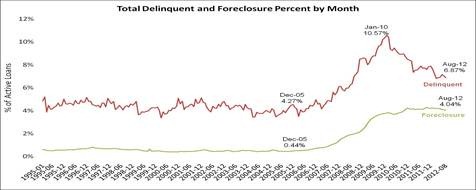 This gives a total of 10.91 percent delinquent or in foreclosure. It breaks down as:
