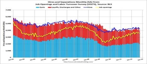 We know that consumers will continue to push economic growth this fall and winter for several reasons. Firstly, the Bureau of Labor Statistics monthly JOLTS report showed 3.6 million job openings (yellow line), and more than 4 million hires (blue line), which is slightly more than the red and blue blocks that show total layoffs and quits. That is why payrolls are increasing some 157,000 per month in 2012, according to the BLS.