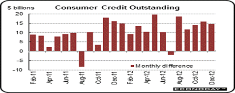 And consumers are spending like their recession is over. Consumer debt continues to grow, especially for autos and student loans, while they continue to pay down revolving credit card debts.