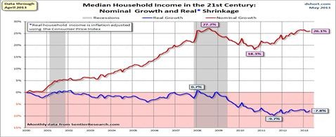Time will tell, of course, but with median household incomes still depressed—down some 7.8 percent since 2000 after inflation—there was the hope that Bernanke would stick to his word. Now he is saying even if the unemployment rate fell to 7 percent, they could begin to taper their security purchases later this year.