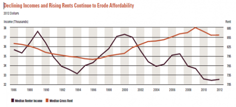 In 1960, about one in four renters paid more than 30 percent of income for housing. Today, one in two are cost burdened,” according to the study, America’s Rental Housing.