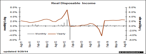 In fact, overall consumer incomes are rising. Personal income growth posted a 0.3 percent gain in August, following a 0.2 percent rise in July. The latest number matched expectations for a 0.3 percent advance. The wages & salaries component was even stronger with a 0.4 percent boost, following a 0.2 percent increase the month before.