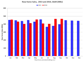 Sales of newly built, single-family homes inched up 0.2 percent in September to a seasonally adjusted annual rate of 467,000 units, the highest level in six years. Sales numbers for August were revised down from 504,000 to 466,000.