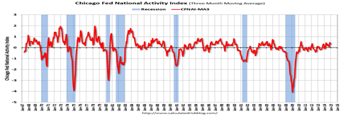The most recent measures do show accelerating growth. For instance, the Chicago Fed National Activity Index (CFNAI), a proxy for nationwide growth, edged up to +0.13 in January from –0.07 in December. It is one of the broadest measures of economic activity, outside of the Gross Domestic Product quarterly report. Three of its four broad categories of indicators that make up the index increased from December, and only one of the four categories made a negative contribution to the index in January.