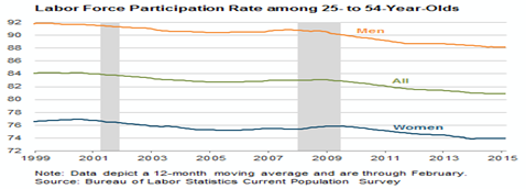 One lament by Fed Chairperson Janet Yellen and others has been the low labor participation rate of the prime-age workers—those 25 to 54 year-olds that have dropped out of the labor force, or are working part time.  But that may be changing, as we get closer to full employment.