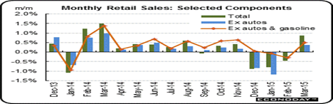 Stronger retail sales gave an indication of the future. Sales of goods and services in March rebounded 0.9 percent after dropping 0.5 percent in February. The market consensus for March was for a 1.1 percent boost. Excluding autos, sales gained 0.4 percent, following no change in February. Expectations were for a 0.6 percent increase. Gasoline sales dipped 0.6 percent after a 2.3 percent increase in February. Excluding both autos and gasoline, sales rebounded 0.5 percent after declining 0.3 percent in February.