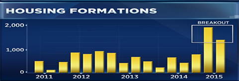 Also, household formation is finally returning to normal levels of 1 million plus new households being formed per year, as the so-called echo boomers move out of their parents’ homes and or leave college to make their own nests.