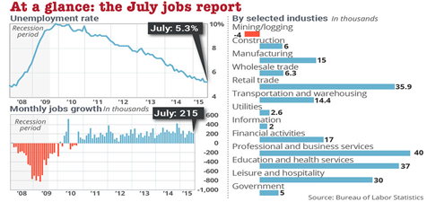 The U.S. pumped out another 215,000 new jobs in July, but it doesn’t look like this is enough to convince the Fed to begin to raise rates in September. Workers still aren’t getting decent raises and millions of Americans are working parttime, or have stopped looking for work.