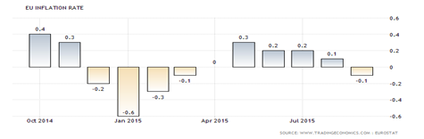 The EU Central Bank Chairman Mario Draghi is the culprit. He announced additional QE (Quantitative Easing) measures would be implemented, beginning in December, mainly because their retail inflation rate is back in negative territory. The inflation rate has been below the ECB’s 2 percent target since February of 2013.