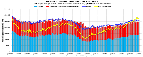 But the Labor Department’s JOLTS report just out signals there are plenty of jobs–in part because hiring picked up: there were 5.14 million hires in October, up from 5.08 million in September.