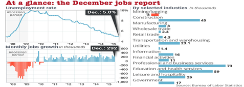 The economy produced 292,000 jobs in the final month of 2015, the Labor Department said Friday. Pundits had predicted a 200,000 plus increase in nonfarm jobs. And because job creation exceeded their predictions, those pundits and some economists will say the Fed has to continue to raise their rates this year. But in spite of the good jobs numbers over the past 3 months—some 2.7 million jobs were created in 2015—there are still more than 7 million job seekers that can only find part time work or no work.