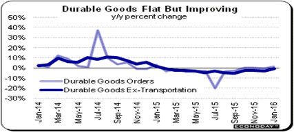 Q4 GDP growth was just revised upward to 1.0 percent, from the 0.7 percent first estimate. This, January’s personal income figures and durable goods orders show consumers and even parts of the manufacturing sector are still expanding, which is a good start for 2016 growth vs. last January, when the severe winter stopped almost all growth in Q1.