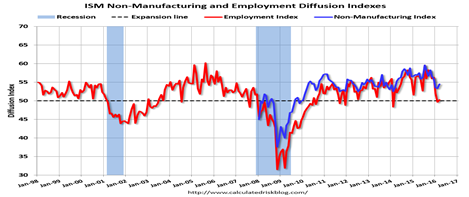 More economic data this week make job and growth prospects for 2016 look even better. And this is on top of the very strong March employment report. The March ISM Non-manufacturing index (i.e., for the service sector) rose to 54.5 percent, up from 53.4 percent in February. The employment index increased in March to 50.3 percent, up from 49.7 percent in February. These are wow numbers!