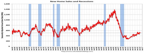 This is still below the 600 to 800,000 new-homes sold annually that prevailed during the 1970s and 1980s. New-home sales then took off in the 1990s to reach 1.4 million annualized units at the height of the housing bubble in 2005, per the above graph. In comparison, current sales are 1.5 percent below the revised February rate of 519,000, but 5.4 percent above the March 2015 estimate of 485,000.
