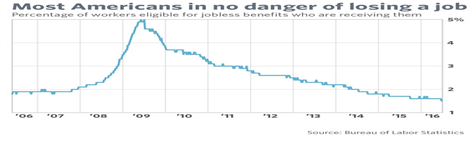 Actually, most Americans. This is most evident in the Labor Department’s weekly initial jobless claims on which the unemployment report is largely based, which is at a record low. New applications for unemployment benefits declined by 4,000 to 264,000 from a revised 268,000 in the prior week, the government said Thursday.