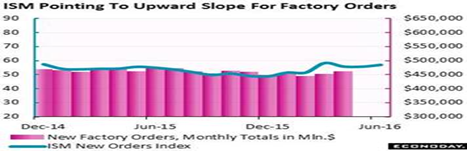 Manufacturing activity also shot up, according to the ISM Manufacturing report. The headline index easily beat expectations at 53.2 for the best reading since February last year. The report’s new orders index is especially strong, up 1.3 points in June to 57.0 with export orders now keeping up, gaining 1.0 point to 53.5 for the 4th straight plus-50 showing, says Econoday.
