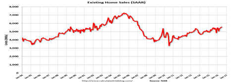 Total existing-home sales, which are completed transactions that include single-family homes, townhomes, condominiums and co-ops, climbed 1.1 percent to a seasonally adjusted annual rate of 5.57 million in June from a downwardly revised 5.51 million in May. After last month’s gain, sales are now up 3.0 percent from June 2015 (5.41 million) and remain at their highest annual pace since February 2007 (5.79 million).