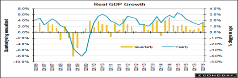 This is perhaps a more accurate measure of growth since it combines both domestic income and spending, which shows that it may be difficult to implement President-elect Trump’s $1B infrastructure plan. The economy is already fully employed and it will be difficult to goose GDP growth higher, unless exports and hence global demand increases as well.