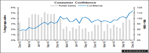And consumers are feeling much more confident since the November elections, with most of the jump in older respondents to both the University of Michigan and Conference Board surveys. They are putting a lot of faith that Prez-elect Trump will be able to carry out his election promises of draining the Wall Street/DC swamps, in other words.