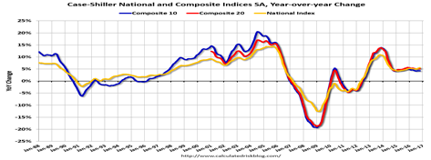 The S&P CoreLogic Case-Shiller U.S. National Home Price NSA Index, covering all nine U.S. census divisions, reported a 5.6 percent annual gain in October, up from 5.4 percent last month. The 10-City Composite posted a 4.3 percent annual increase, up from 4.2 percent the previous month.