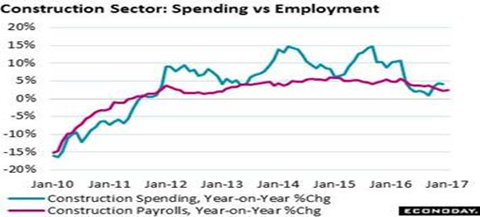 And this is why Pending and New-home sales are doing so well. Overall construction spending fell 0.2 percent in December but spending on new single-family homes rose 0.5 percent in the month with multi-family spending up 2.8 percent.