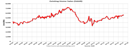 Total existing-home sales , which are completed transactions that include single-family homes, townhomes, condominiums and co-ops, expanded 3.3 percent to a seasonally adjusted annual rate of 5.69 million in January from an upwardly revised 5.51 million in December 2016. January’s sales pace is 3.8 percent higher than a year ago (5.48 million) and surpasses November 2016 (5.60 million) as the strongest since February 2007 (5.79 million), which marked the end of the housing bubble.