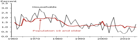 A notable shift in the relative household growth rates after 2007 reflects declines in “headship” rates, that is, the share of the population identified as heads of households, according to a report by the San Francisco Federal Reserve. It is mostly the result of the Great Recession that decimated the earning power of so many young adults, in particular. This means that for over five decades headship rates in the United States had increased on average before falling off in the wake of the financial crisis after 2007.