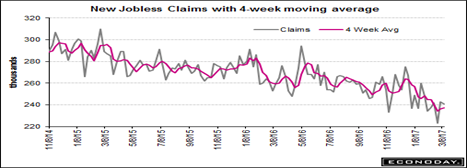 And in a sign that job availability is still tight, initial jobless claims remain low. Initial jobless claims are holding at trend, down 2,000 in the March 11 week to 241,000, reports Econoday. The 4-week average, little changed at 237,250, is down nearly 10,000 from mid-February in what offers a favorable signal for the March employment report that comes at the end of the month.