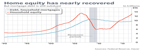 Sam Khater, deputy chief economist for CoreLogic, agrees, says Requier. “What’s unusual about this recovery is that it’s been lopsided. Wealth — home equity and financial equity — have recovered. Incomes have not. One-half of all households have participated in the massive run-up of stocks, two-thirds have participated in the gains from home ownership. The flip side is the inverse, the people who have not participated. How has their recovery been?”
