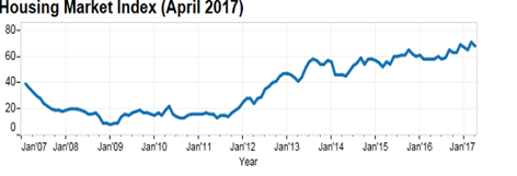And In a further sign that the housing market continues to strengthen, builder confidence in the market for newly-built single-family homes rose two points in May to a level of 70 on the National Association of Home Builders/Wells Fargo Housing Market Index (HMI). This is the second highest HMI reading since the downturn.