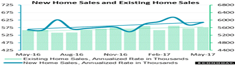 It was very good news that new-home sales rose nearly 3 percent in May to a 610,000 annualized rate. The report, always volatile, included a big upward revision to April which however, at 593,000, is still the year’s low. But that isn’t close to the 1 million plus new homes built annually during the housing bubble.
