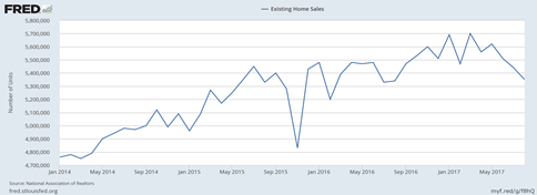 The number of existing-homes listed for sale in 2017 to date is the lowest since 1999, according to the NAR. That’s in part because distressed sales volumes have fallen from more than 100,000 a month at the peak of the post crisis period, 2009-2012, to about 25,000 today, which means there aren’t many cheaply-priced homes left over from the housing crash.