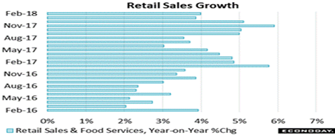 Retail sales have fallen over the past 3 months from their November high. Department stores were especially weak in February, down 0.9 percent, reports Econoday. What isn’t a surprise is a 4th straight month of decline at vehicle dealers, down 0.9 percent in a drop that re-emphasizes the effect of the spike in the hurricane season which pulled sales forward because so many vehicles were lost due to the floods.