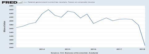 Economists are predicting second quarter GDP growth of as much as 3.8 percent, up from 2.2 percent in Q1 2018. But it may be a one-time surge, as all indications are the massive 2017corporate tax cut that lowered their nominal tax rate from 35 to 21 percent won’t create any more jobs than are normal in a fully-employed economy by investing, say, in more production capacity (i.e., in capital expenditures).